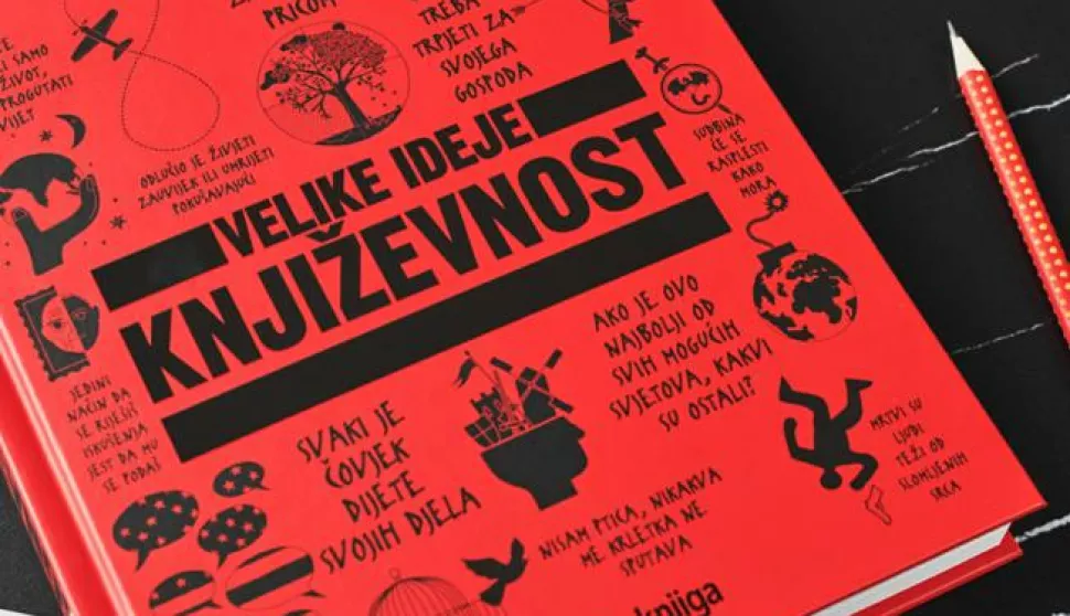 Konkretno, radi se o knjizi "VELIKE IDEJE: KNJIŽEVNOST", prvom izdanju iz serijala "Velike ideje", posvećenom, kako i sam naslov navodi, književosti, koje je krajem prošle godine objavljeno u nakladi zagrebačke Školske knjige i izazvalo veliku pozornost javnosti, čitateljske publike i svih onih koji se izravno ili neizravno bave poviješću književosti u cijelini ili u njezinim dijelovima (žanrovima). Unikatno je to djelo, u originalu objavljeno pod naslovom The Literature Book u Velikoj Britaniji 2016. (Dorling Kindersley Limited) i prvi put jedno takvo u hrvatskom izdavaštvu (prijevod: Vedran Pavlić), koje formom i sadržajem plijeni pozornost, počevši od napadne crvene naslovnice s hrpom citata do zahvala na kraju i stražnje strane knjige, također crvene i citatne. Iza tog divovskog projekta stoji skupina autora, a razultat je doista impresivan.