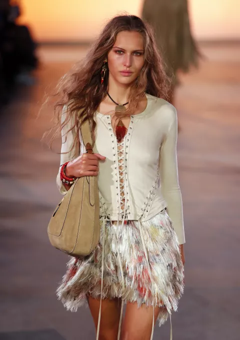 Lepršave haljine, široke lanene hlače i oversized košulje dominiraju kolekcijama gotovo svih modnih kuća. Čak i kupaći kostimi prate ovaj val opuštenosti, a jednodijelni modeli s dubokim izrezima i otvorenim leđima vraćaju se u velikom stilu, često u kombinaciji s prozirnim pareima i kaftanima. Festivalski outfiti prate boho duh, ali s modernim zaokretom: mrežaste haljine preko bikinija, šljokičaste majice, cargo suknje i udobne, ali statement tenisice čine osnovu garderobe za svaku glazbenu avanturu.