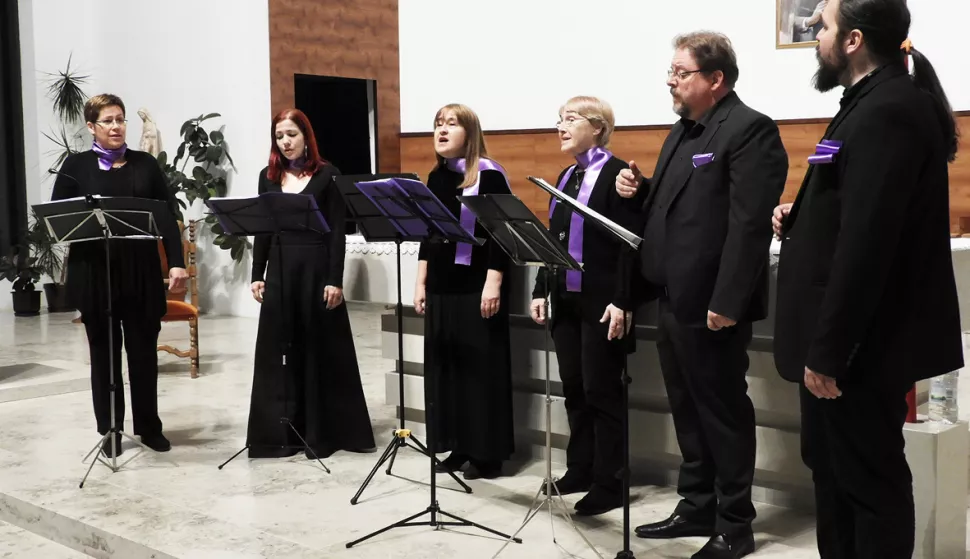 Riječ je o pjevačima koji su doista izbrusili zanat i koji su posljednjih godina imali nagrađivane nastupe na izuzetnim natjecanjima. Na međunarodnom natjecanju Venezia in Musica ansambl je nastupio2016., u kategoriji Musica Sacra osvojio zlatnu medalju i bio pobjednik natjecanja s najvećim brojem bodova. Sljedeće godine na Međunarodnom natjecanju zborova i vokalnih sastava Festivala glazbe Zagreb 2017. ansambl je nastupio u dvije kategorije i osvojio jednu zlatnu i jednu srebrnu medalju. U kategoriji Slobodno vokalno višeglasje opet je bio pobjednik natjecanja s najvećim brojem bodova. Prošle godine Gospodnetić Singers osvojili su zlato i najviše bodova od svih ansambala na 15. susretu hrvatskih malih vokalnih sastava u Sisku te zlato i prvo mjesto u kategoriji Popular music te natpjevavanje za grand-prix na 2. međunarodnom zborskom natjecanju Croatia Cantat u Rijeci. Ansambl čine Heda Gospodnetić, Sara Gospodnetić, Sebastijan Jurić, Sonja Gospodnetić, Robert Homen i Vesna Kartelo.Nakon pozdrava dobrodošlice župnika, preč. Nikole Jušića, koncert crkvenoga višeglasnog pjevanja u Slatini počeo je izvedbom hrvatskoga tradicionalnog napjeva Stala majka pod raspelom, a potom su izvedene skladbe podijeljene u nekoliko povijesnih skupina. Renesansni ciklus počeo je skladbom Ave Maria Luisa da Victorie iz 16. st., izveden je i ciklus baroknih napjeva (s J. S. Bachom kao najznačajnijim predstavnikom baroknog razdoblja) i klasicizma (W. A. Mozart), a zatim i skladbe autora 20. st. U tom su dijelu koncerta zastupljeni hrvatski svećenik, skladatelj i dirigent iz Bačke Albe Vidaković (Descendit Jesus), Emil Cossetto (Stabat Mater), Bonaventura Duda (Barjaci kreću Kraljevi), mađarski skladatelj Zoltan Kodaly, čija je skladba Stala plačuć tužna mati izvedena na hrvatskom te suvremeni hrvatski skladatelji Josip degl' Ivellio (Ave verum) i Bruno Vlahek (Tui nati vulnerati). Koncert je prigodno završio skladbom Amen suvremenog talijanskog skladatelja Uberta Pieronija.