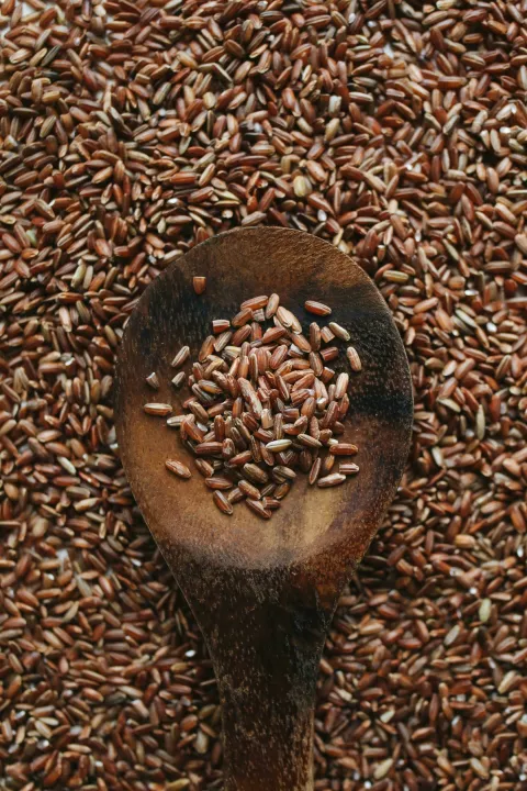 Koncentracija je najveća u smeđoj riži, koja sadrži veće količine teških metala od polirane (bijele) riže jer je arsen prisutan u vanjskom omotaču, koji se uklanja u procesu dobivanja bijelog zrna. Bezglutenske verzije kruha, špageta i žitarica često sadrže rižino brašno kao supstitut pšenice. Riža ima deset puta više arsena nego druga hrana zbog načina na koji se uzgaja.