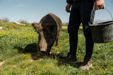 Mala, petogodišnja divlja svinja, pravi je kućni ljubimac
