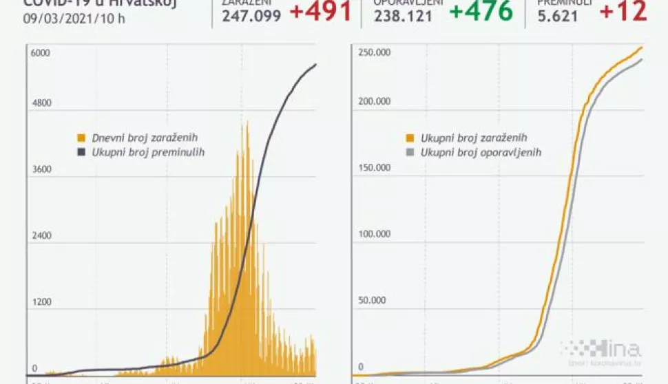 Umrle su 5621 osobe, a oporavila se 238.121 osoba, od toga 476 u posljednja 24 sata.
