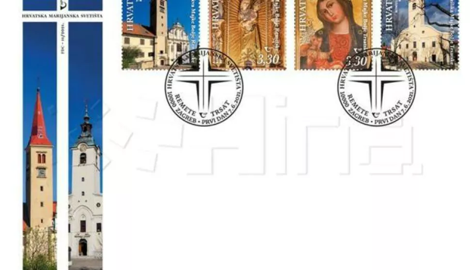Hrvatska pošta u ponedjeljak pušta u optjecaj nove prigodne poštanske marke “Hrvatska marijanska svetišta”, a ovogodišnja serija sastoji se od četiriju maraka s motivima umjetnina i svetišta u Remetama i Trsatu. Marke posvećene svetištu u Remetama prikazuju crkvu Uznesenja Blažene Djevice Marije i čudotvorni kip Majke Božje Zagovornice Hrvatske, a marke posvećene svetištu na Trsatu prikazuju svetište Majke Božje Trsatske i čudotvornu sliku Majke Milosti. Autor maraka je Dean Roksandić, dizajner iz Zagreba, a autori fotografija su Mario Romulić i Dražen Stojčić (Trsat – interijer i eksterijer, Remete - interijer) i Elvir Tabaković (Remete – eksterijer). Poštanske su marke izdane u arčićima od osam maraka i s jednim privjeskom u nakladi od 50 tisuća primjeraka po motivu. Vrijednost svake pojedinačne marke iznosi 3,30 kuna. Hrvatska pošta izdala je i prigodnu omotnicu prvog dana (FDC). H