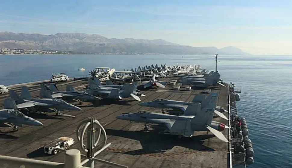 "Trideset država sa zajedničkim ciljem i vrijednostima predstavlja najjači i najbolji savez u povijesti čovječanstva, više od 70 godina mira i stabilnosti zbog onoga čemu NATO i naši saveznici doprinose", ističe. Najnapornije u obilasku bile su strme i uske brodske stepenice kojima su novinari stigli na prvu palubu. Kapetan im kaže da dnevno leti oko 100 letjelica i sposobni su održavati operacije 24 sata, što često i rade. "Imamo i letjelice za elektroničko ratovanje i AWACS letjelice na brodu", kaže.