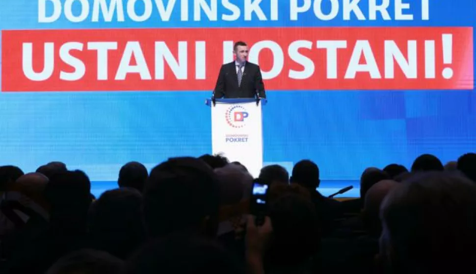 Na predizbornom skupu Domovinskog pokreta pod sloganom “Ustani i ostani!” predsjednik stranke Ivan Penava pozvao je da se ne nasjeda na tezu o izboru između crvene i plave Hrvatske, ponudivši treći put - vukovarsku Hrvatsku, uz poruku vrijeme je sada i ovdje, boriti se i ostati svoji na svome. Stavio je naglasak na prioritete zaustavljanja negativnih demografskih trendova, klijentelizma i korupcije, pakta Pupovca i Plenkovića, sprječavanje migrantske invazije i prekidanje nametanja rodne ideologije. Pozvao je na uključenje sve intelektualne snage i raspoloživih kapaciteta u zaustavljanje demografskog sloma Hrvatske, golem gubitak i zamjenu stanovništva, obranu hrvatskih granica kako bi se sačuvala sigurnost. I to tako da se omogući hrvatskoj policiji da radi svoj posao, poručio je Penava. H
