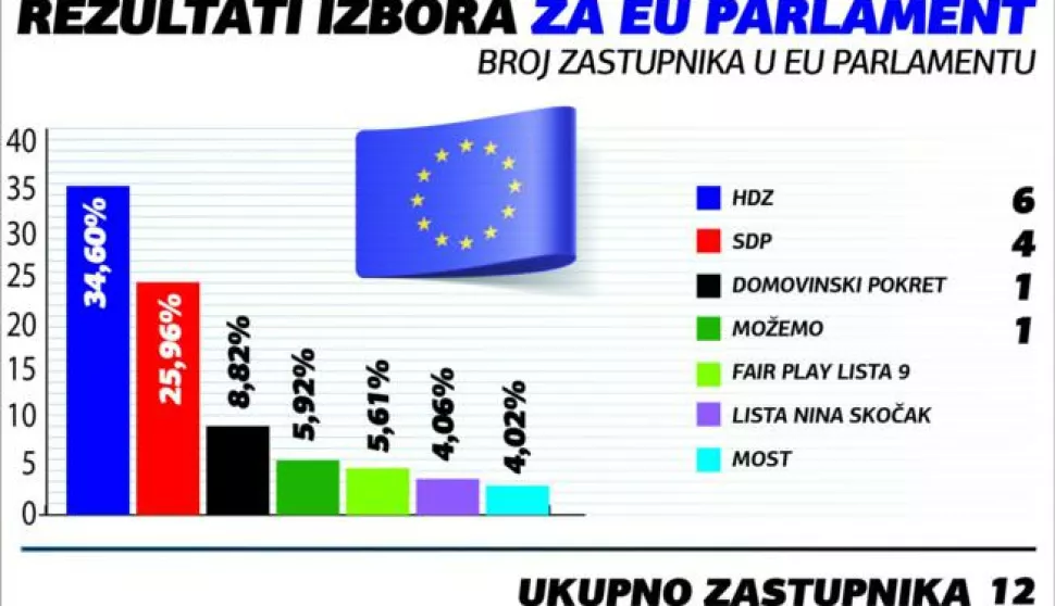 Na europskim izborima u Hrvatskoj HDZ je osvojio šest mandata, SDP četiri, a Domovinski pokret i Možemo po jedan mandat. Lista HDZ-a dobila je 34,6 % glasova (ili 256.295). Predsjednik te stranke Andrej Plenković dobio je najviše preferencijalnih glasova na ovim izborima od svih - čak 101.820. Slijedi ga treći na na HDZ-ovoj listi Davor Ivo Stier, koji je osvojio 9,89 % glasova (25.334) te Marijana Petir (12. na listi) sa 8,22 %. Lista SDP-a i partnera dobila je solidnih 25,96 % glasova (192.314), što im donosi 4 eurozastupnika. Njihovoj je listi opet najviše donijela Osječanka Biljana Borzan, koja je ukupno druga po broju preferencijalnih glasova - 83.656. Tonino Picula (kao posljednji na listi) sa 30.504 preferencijalna glasa, ili 15,64 %, drugi je po broju glasova na toj listi, a slijedi ga Predrag Fred Matić sa 8,96 %. Po jednog zastupnika osvojili su treći Domovinski pokret sa 8,82 % (65.383) te četvrti Možemo, ovaj put sa 5,92 % glasova (43.890). Najbrojnijoj koaliciji, onoj Fair play liste na čelu s IDS-om je unatoč tome što su prešli prag i imali 5,61 % glasova (41.606), ipak izmaknulo mjesto u Europskom parlamentu. Stranka koja je najviše podbacila je Most, osvojivši samo 29.824 glasova (4,02 %), manje i od vrlo dobrog rezultata Nezavisne liste Nine Skočak s 30.127 glasova. Samo sa 2,99 % za Listu Prava i Pravde je potvrda da su birači uvidjeli svu besmislenost glasovanja i slanja u EP Mislava Kolakušića prije pet godina. OIP na čelu s Karolinom Vidović Krišto dobio je 1,37 %, a kandidacijskoj listi grupe birača Ladislava Ilčića (također bivšeg europarlamentarca) pripalo je još manje - 1,22 % glasova. Kada je riječ o dijaspori, tu je prednost HDZ-a sa 68,01 % (8120 glasova) još izraženija, a slijede ih DP sa 9,69 % (1158) i Možemo sa 6,53 %, pa tek onda SDP-ova koalicija sa 4,56 % glasova.