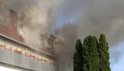 Više od 100 vatrogasaca gasilo je u četvrtak poslijepodne veliki požar koji je zahvatio poslovno-skladišnu zgradu u Ulici svetog Leopolda Bogdana Mandića u Osijeku. Požar je izbio u bivšoj upravnoj zgradi Panturista, a u prizemlju se nalazi tvrtka koja se bavi proizvodnjom plastične stolarije.