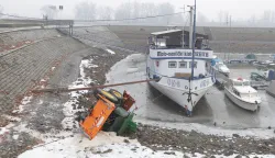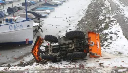Ledena kiša uzima danak, a nesreća koja se dogodila u Zimskoj luci mogla je završiti kobno po vozača. Naime, Unikomov traktor s posipačem ondje je stajao prevrnut uz zaleđenu Dravu. Direktor Unikoma Ivan Pandžić kazao je kako je traktor solio Trg Ante Starčevića i kretao se Ribarskom ulicom kako bi se spustio na promenadu. Na nagibu prema Dravi, koji je bio zaleđen, traktor je proklizao i on se srušio. Vozač je, prema riječima Pandžića, u redu. Sam je izašao iz traktora, a hitna pomoć odvezla ga je u bolnicu na pregled. Još se čekaju službene informacije KBC-a Osijek o njegovim ozljedama, no po njegovoj izjavi, ozlijedio je kuk. Tijekom dana traktor će biti izvučen iz Zimske luke.