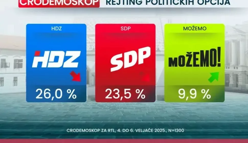 Vidi se pad HDZ-a, ali i pad SDP-a, dok je tek blago narastao Možemo!