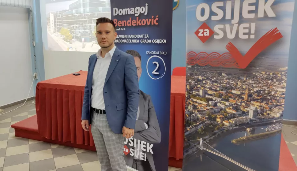 Nezavisni kandidat za gradonačelnika Osijeka 26-godišnji doktor stomatologije Domagoj Bendeković, kojega na predstojećim lokalnim izborima podržava koalicija stranaka HDSSB i HSS, predstavio je u utorak svoj izborni program u kojemu razvoj Osijeka vidi na obje obale rijeke Drave.