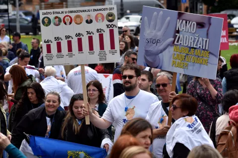 Sindikalni su čelnici pak ponovili svoje zahtjeve i zamjerke vladajućima. "Naša borba nije od jučer, već više od godinu dana tražimo redefiniranje koeficijenata, izuzeće od ocjenjivanja i odgodu modularne nastave", podsjetio je šef Nezavisnog sindikata zaposlenih u srednjim školama, Zrinko Turalija.