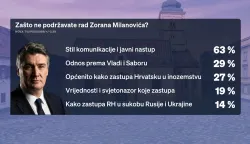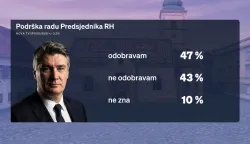 Iza nas je i godina dana mandata Zorana Milanovića koji manje javno nastupa, ali i dalje njeguje isti stil. Njegove poteze i odluke uglavnom odobrava 47 posto ispitanika, dok 43 posto uglavnom ne odobrava, a njih 10 posto ne zna. Ako trebaju navesti barem dva razloga zašto odobravaju, ispitanicima je na prvom mjestu njegov stil i javna komunikacija, za njih 46 posto. 35 posto ispitanih kažu da je razlog kako zastupa Hrvatsku u sukobu Rusije i Ukrajine. Odnos prema Vladi i Saboru je na trećem mjestu s 30 posto, vrijednosti i svjetonazor ima 27 posto, a kako zastupa Hrvatsku u inozemstvu je razlog zbog kojeg ga odobrava 23 posto ispitanika. Onima koji ne odobravaju njegov rad također je na prvom mjestu stil i komunikacija sa 63 posto, odnos prema Vladi i Saboru 29 posto, kako zastupa Hrvatsku u inozemstvu 27 posto, vrijednost i svjetonazor 19 posto te kako zastupa Hrvatsku u sukobu Rusije i Ukrajine 14 posto. Na pitanje kako bi ocijenili rad Zorana Milanovića u proteklih godinu dana, 59 posto ispitanika odgovara u skladu s očekivanjima, 30 posto ispod očekivanja, iznad 3 posto, a njih 8 posto ne zna.