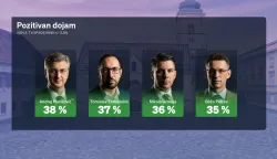 Zoran Milanović političar je o kojemu najveći broj građana ima pozitivan dojam, točnije njih 57 posto. Slijedi ga ministar obrane Ivan Anušić s 42 posto. Na listi se ovaj mjesec nalaze i dva nova imena, SDP-ova europarlamentarka Biljana Borzan, koja je odmah završila na visokom trećem mjestu po pozitivnom dojmu s 40 posto te ministra branitelja Tomu Medveda koji je na četvrtom mjestu s 39 posto. Našao se ispred stranačkog šefa Andreja Plenkovića koji je na petom mjestu s 38 posto. Tu su još Tomislav Tomašević s 37 posto, Nikola Grmoja s 36 i Božo Petrov s 35 posto, šef Sabora Gordan Jandroković s 34 posto, a deseto mjesto dijele Oleg Butković i Ivana Kekin s 32 posto pozitivnog dojma.