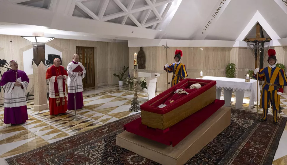 Tijelo pape Franje (88), koji je umro u ponedjeljak od moždanog udara i zatajenja srca, do izlaganja u bazilici svetog Petra bilo je položeno u lijes u kapeli Doma svete Marte, gdje je i živio tijekom svog pontifikata koji je trajao skoro punih 12 godina. Njegovo će tijelo procesijom predvođenom kardinalima biti preneseno u baziliku svetog Petra, gdje će se vjernicima omogućiti da odaju počast prvom latinoameričkom papi u povijesti.