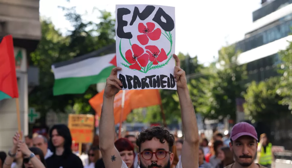 Skup potpore Palestini i prosvjed zbog izvoza srpskog oružja u Izrael održan je u nedjelju u Beogradu, na poziv skupine "Podrška narodu Palestine - Srbija" kojem su se pridružili i studenti u blokadi sa različitih fakulteta.