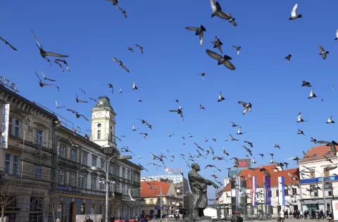 Na Trgu Ante Starčevića Bruni su u kadar uletjeli golubovi, koji su nad glavom Oca Domovine demonstrirali pogodnosti ptičje perspektive.