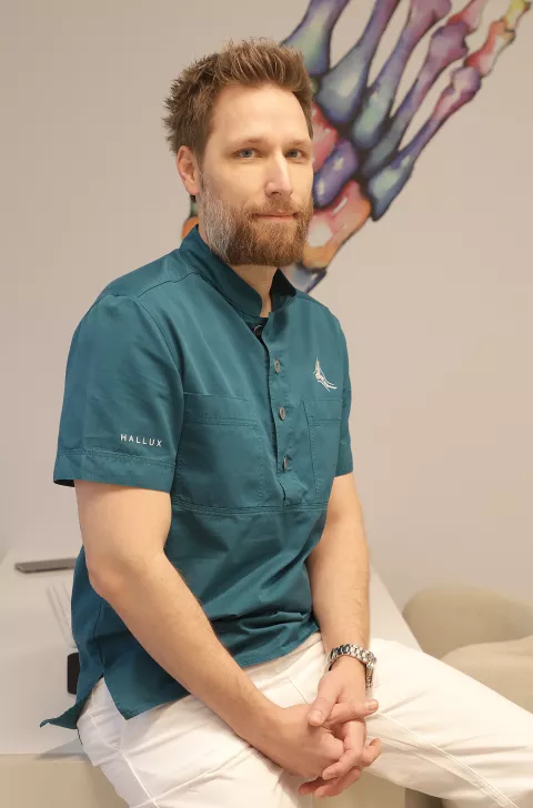 Plaćamo danak evoluciji! Tako bih, najkraće, mogao odgovoriti na pitanje zašto je danas velika gužva kod ortopeda. Ljudi su nekad živjeli puno kraće, prije samo 150 godina prosječna je dob bila 50 godina. Danas živimo, prosječno, puno duže, a u toj tzv. trećoj životnoj dobi tijelo plaća degenerativnim promjenama, artrozama i različitim drugim stanjima. Drugi su razlog sportovi - nikad se prije ljudi nisu u tolikom broju bavili sportom, a posljedično tome nikad nije bilo više sportskih ozljeda. To su, dakle, naši najbrojniji pacijenti - sportska populacija i populacija treće životne dobi, otkriva na početku razgovora Marko Džapo, dr. med., spec. ortopedije i subspecijalist traumatologije lokomotornog sustava, koji je nedavno u rodnom Osijeku, u Cesarićevoj ulici 4, otvorio Hallux ortopediju, prvu privatnu specijalističku ustanovu sve do Zagreba posvećenu isključivo dijagnostici i liječenju bolesti i ozljeda lokomotornog sustava.