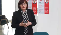 Nina Dražin Lovrec, predsjednica Hrvatske komore inženjera građevinarstva, koja okuplja 7700 članova, predstavila je studentima put do učlanjenja u Komoru i benefite koje im članstvo donosi.