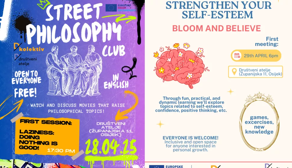 Međunarodni volonteri Europskih snaga solidarnosti organizaciji za društveni razvoj organiziraju za sve zainteresirane građane besplatne radionice u Društvenom ateljeu.