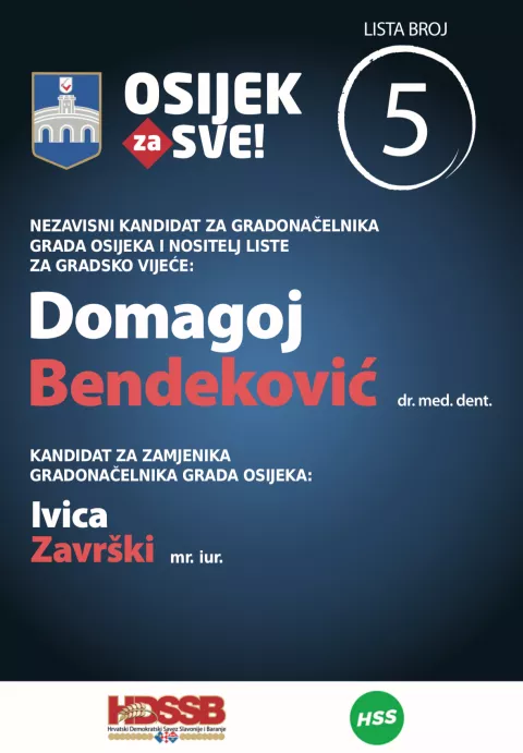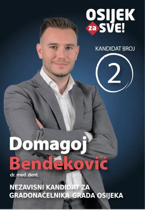 Domagoj Bendeković, doktor dentalne medicine i nezavisni kandidat za gradonačelnika grada Osijeka, rođeni je Osječanin. Svoj studij kao i osnovnu i srednju školu završio je u Osijeku, a njegova je obitelj već tri stoljeća u ovome gradu i on, kaže, tu tradiciju želi održati.