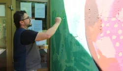U Dječjem se vrtiću Jabuka u četvrtak održavala prava mala radna akcija. Naime, u sklopu nastave učiteljskog studijskog programa Fakulteta za odgojne i obrazovne znanosti te kolegija Dječji likovni rad i zajednica, dr. art. Marko Šošić, izv. prof. s nekoliko je studentica posjetio vrtić kako bi oslikali i uredili prostorije vrtiće. U akciju su se uključili svi - i djeca predškolske skupine i njihove odgojiteljice te mentorice.