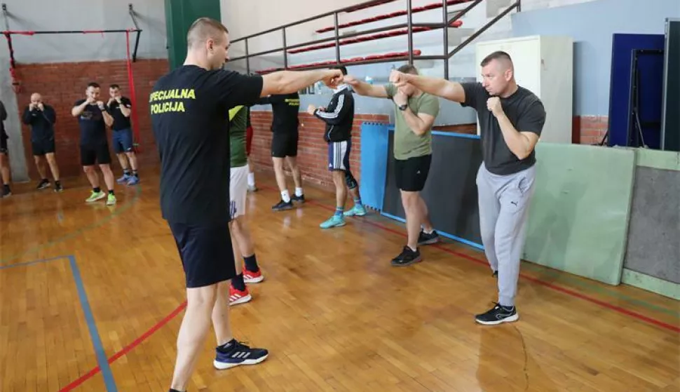 Boksač Gabrijel Veočić i policijski službenik Zvonimir Rebolj održali su u četvrtak u dvorani PU osječko-baranjske boksački trening za policajce. Dio je to programa uključivanja vrhunskih sportaša u sustav MUP-a kako bi podigli na višu razinu temeljnu motoričku pripremu te ojačali segment specijalne tjelesne pripreme policijskih službenika koji obavljaju složene zadaće.