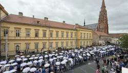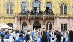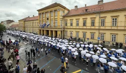 S balkona HNK-a ispraćaj su pratili zamjenik župana OBŽ-a Josip Miletić, zamjenik gradonačelnika Grada Osijeka Dragan Vulin te pročelnica Upravnog odjela za obrazovanje i mlade Miranda Glavaš-Kul. Kratko su maturantima poželjeli sreću u daljnjem nastavku školovanju ili pronalaženju posla i poručili im da na ovaj svoj dan uživaju.