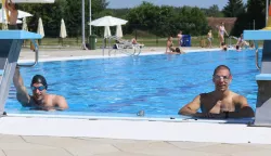 U okruglom bazenu nešto je življe, obitelji s malom djecom zauzele su svoje pozicije