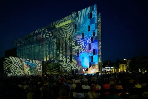 Krov (terasa) Kulturnog centra lokacija je na kojoj će se projicirati filmovi. Filmski program starta 4. srpnja, kada će biti osječka premijera filma "Dobra djeca", o kojem će progovoriti i autorski tim, redatelj Filip Peruzović te glumci Nina Violić i Filip Šovagović. Filmski program završava španjolskim filmom "Vrsta pčela" 30. kolovoza. Glazbeni program izvodit će se na više lokacija, otvaranje i zatvaranje OLJK-a bit će na Trgu Vatroslava Lisinskog, a a capella zbor King's singers iz Velike Britanije, primjerice, bit će u dvorani Franje Krežme. Glazbeni program izvodit će se još na platou ispred Kulturnog centra, u dvorištu Muzeja Slavonije te na krovnoj terasi KC-a.