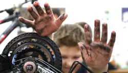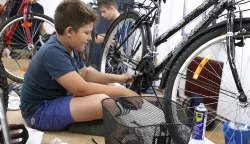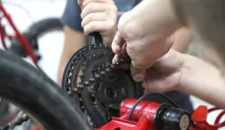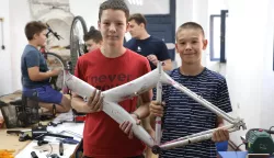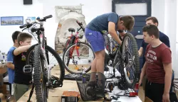 Za našeg posljednjeg posjeta, u četvrtak, kao demanti zatekli smo prizor vrijednih, mazivom i uljem zaprljanih, ruku malih servisera bicikala, koji su, koristeći se svom silom alata, poput gedora, imbus-ključeva i raznih odvijača, primjenjivali znanje koje im cijeloga tjedna usađuje voditelj radionice “Servis i popravak bicikla” Tomislav Vdovjak, inače nastavnik elektronike u Elektrotehničkoj i prometnoj školi Osijek.