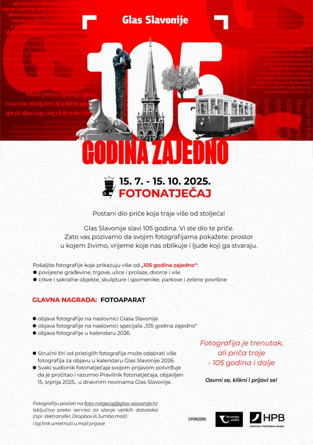 U sklopu projekta “105 godina zajedno”, Glas Slavonije organizira svečani event na kojem će se održati promocija najbolje ocijenjenih radova s fotonatječaja “105 godina zajedno” kroz tematsku izložbu koja vizualno priča priču o prošlosti, sadašnjosti i budućnosti vodećeg regionalnog medija s tradicijom dugom 105 godina.