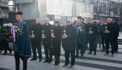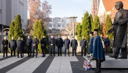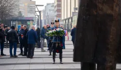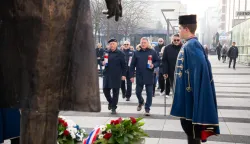U povodu 26. obljetnice smrti prvog predsjednika RH, dr. Franje Tuđmana, pred spomenikom na Trgu slobode postavljenom njemu u spomen u srijedu su, uz počasnu gardu Hrvatskog sokola Osječko-baranjske županije, položila cvijeće i upalila svijeće izaslanstva Osječko-baranjske županije, Grada Osijeka i Koordinacije udruga proisteklih iz Domovinskog rata.