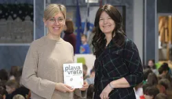 “Djeca ne čitaju često poeziju, pa sam odabrala moju kolegicu, našu Osječanku Marijanu Radmilović i njezinu zbirku Plava vrata”, otkrila nam je dok su učenici zauzimali svoja mjesta u holu škole.