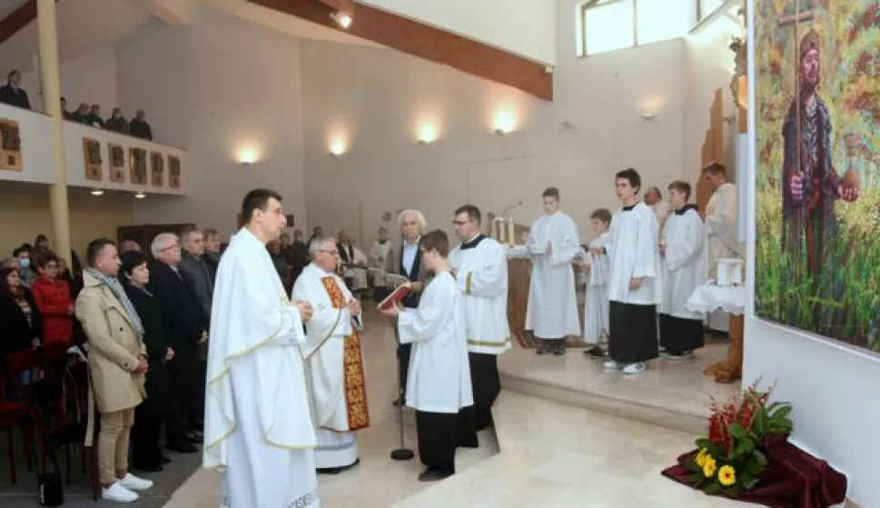 „Izgradnjom nove crkve vjernici su od tadašnjeg župnika fra Branka Janjića i prof. Branka Matišića zatražili da se i za novu crkvu napravi nova slika sveca zaštitnika čiju su izradu povjerili umjetniku Goranu Petraču. Danas stoga blagoslivljamo ovo novo djelo na kojem me se kao svećenika posebno dojmilo s jedne strane kraljevska poniznost, a s druge muškost i čvrstina te svjetlost i nada koji današnjim vjernicima toliko nedostaju“, kazao je župnik fra Marko.