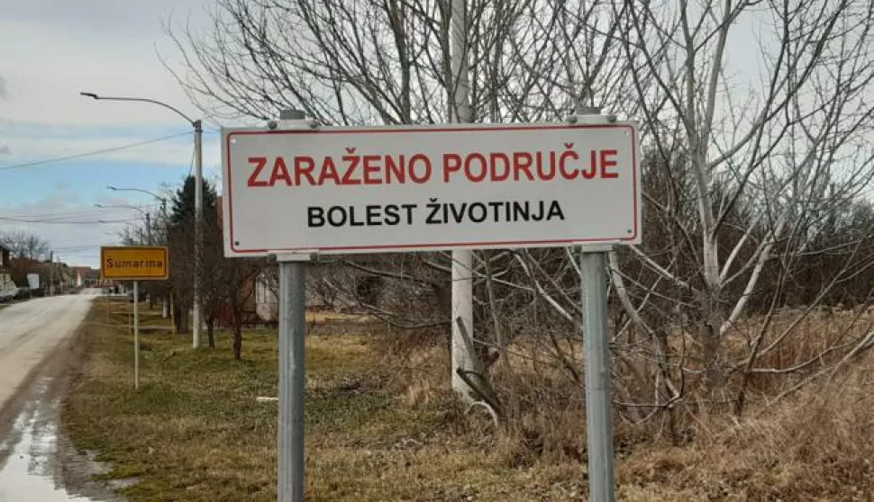 Znakovi s natpisom ‘’Zaraženo područje - bolest životinja’’ još uvijek stoje na nekoliko lokacija uz pristupne ceste Belom Manastiru.