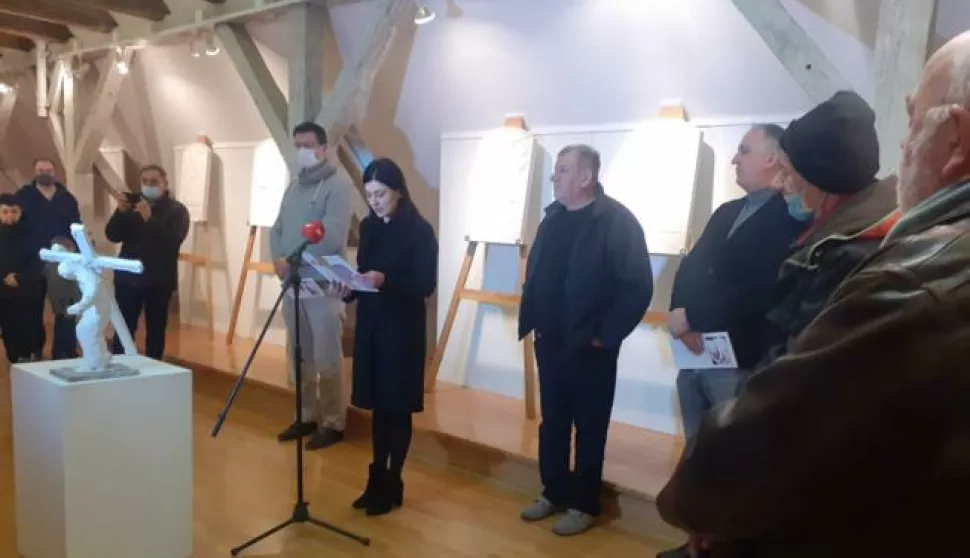 Nakon uvodnih riječi ravnatelja Spomen-muzeja Tadije Crnjaka, koji je izožbu i otvorio, o njoj je govorio stalni suradnik, likovni i književni kritičar Mirko Ćurić. Kustosica Spomen-muzeja Irena Ivkić pročitala je tekst koji je o Bazini, njegovu radu i izložbi napisao profesor dogmatke teologije na KBF-u u Đakovu prof. dr. sc. Ivica Raguž, a u kojem se ističe kako je u Bazininu kamenom križnom putu muka čovječanstva, da Bog preuzima svu kamenitost svijeta. O izložbi je govorio i autor Bazina. Riječ je o kiparu i slikaru koji je čitav život posvetio umjetničkom stvaralaštvu, produbljujući svoje stvaralačke vidike i kroz profesionalni rad.