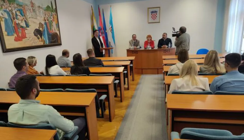 ŽUPANJA - U gradskoj vijećnici priređen je prijam za novu generaciju studenata Veleučilišta Baltazar s područja Vukovarsko-srijemske županije, u kojoj je u kolovozu 2021. otvoren Upisni centar. Za sada imaju 43 polaznika, od kojih je u novoj akademskoj godini, ističe voditelj Rudi Štekl, upisano njih 20, a toliko ih očekuje i nagodinu. Svi programi Veleučilišta, koje je u proteklih 21 godinu pohađalo više od 8000 studenata, kreirani su prema najnovijim europskim standardima kvalitete u obrazovanju. Studenti u Županji mogu birati između dva studijska programa, dodiplomskog – Poslovanje i upravljanje, gdje stječu znanje prvenstveno iz ekonomskih znanosti, i specijalističkog – Menadžment javnog sektora. Nastavu prate online, u virtualnom okruženju, što uključuje moderan i kvalitetan način obrazovanja, s pomoću informacijsko-komunikacijske tehnologije, a ispite polažu u prostorijama Gimnazije, kamo dolaze profesori iz Baltazara. Pročelnica Upravnog odjela za obrazovanje i društvene djelatnosti VSŽ-a Jadranka Mustapić-Karlić upozorila je na važnost izvođenja kvalitetnih studijskih programa jer uz diplomu studenti trebaju dobiti i znanje i steći potrebne kompetencije. "Županija je s velikim veseljem ušla u ovu priču, odlučila je pomoći te studentima financirati prvu godinu studija. Cilj nam je obrazovanje što većeg broja mladih ljudi, da se kao visokoškolovani kadar mogu zaposliti na što boljim radnim mjestima i svojim znanjem i iskustvom pomoći razvoju ovoga kraja", zaključila je. Cijena studija na preddiplomskoj razini je 18.800 kuna, a na diplomskoj 22.500 kuna. Upisnicima s podučja Županje školarinu iznosom od po 4500 kuna sufinancira Grad, a svima ostalima Županija sa po 4000 kuna. Grad Županja i Baltazar potpisali su ugovor o strateškom partnerstvu. Grad je prepoznao potrebu za poticanjem visokoškolskog obrazovanja i važnost kontinuiranog cjeloživotnog učenja kao temelja gospodarskog razvoja, te je odlučio pomoći mladim ljudima i zadržati ih u Županji. "Baltazar smo prepoznali kao dobrog i poželjnog partnera, i naša su vrata otvorena i drugima. I dalje ćemo u skladu s mogućnostima pomagati studentima", kazao je gradonačelnik Damir Juzbašić. Studentima se u gradskoj vijećnici prigodnim riječima obratio i pomoćnik dekana za nastavu i studente Veleučilišta Baltazar, Kristijan Čović. M.L.O.