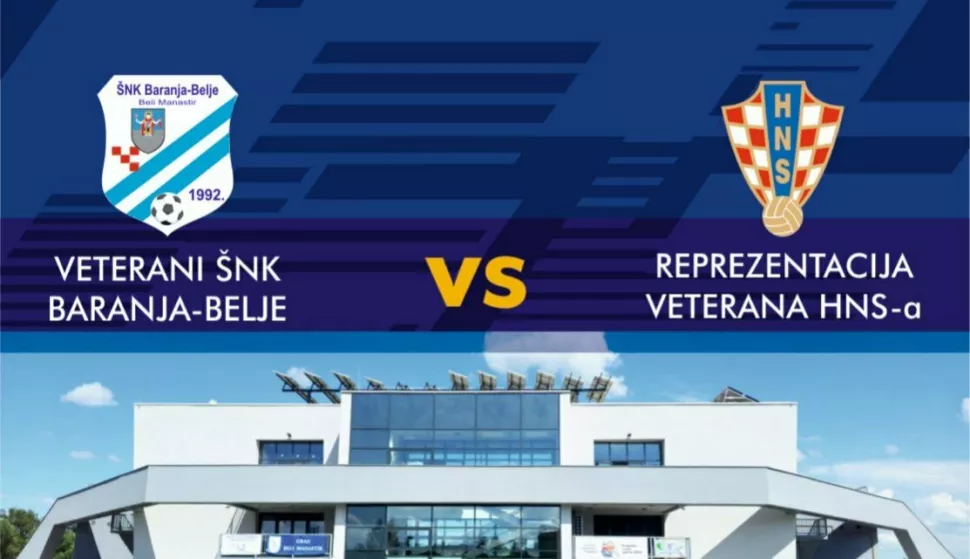 BELI MANASTIR - Na pomoćnom igralištu novog gradskog stadiona u nedjelju, 1 rujna, igrat će se revijalna nogometna utakmica između veterana ŠNK-a Baranja-Belje i reprezentacije veterana HNS-a. Utakmica počinje u 11 sati, ulaz je slobodan. Prvo je to gostovanje veterana HNS-a u Belom Manastiru. Inače, ŠNK Baranja-Belje gotovo od povratka u Baranju ima veteransku ekipu, koja se natjecala u okviru lige NS-a Beli Manastir.