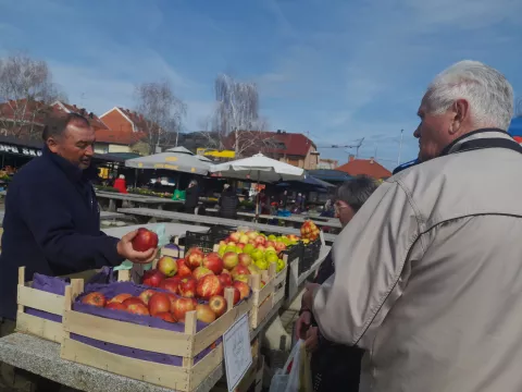 Uistinu, pogled na ''pijac'' u srijedu, jedan od dva glavna tržna dana u Đakovu, ni oko 10 sati nije obećavao. Bila je to mršava srijeda, pa se od subote poslovično očekuje puno više. No ta opća slaba slika tržnice nije vrijedila za sve. Dragan Alšić užurbano je punio vrećice kupaca svojim voćem, a po cijenama već od jednog eura. Potegnuo je čak iz Valpova i na đakovačkoj je tržnici, kaže, redoviti prodavač.