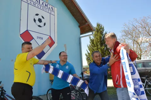 - Nama je drago da se u sklopu proslave Dana Općine Bizovac poklopilo da možemo ugostiti dugogodišnje prijatelje koji su došli prvi puta kao navijači odigrati utakmicu, a kasnije i navijati u Osijeku za svoje. Zahvaljujem se i načelniku Srećku Vukoviću koji je to sve podržao i ponudio nam općinsku podršku - kazao je Tomo Ivković u ime Sloge.