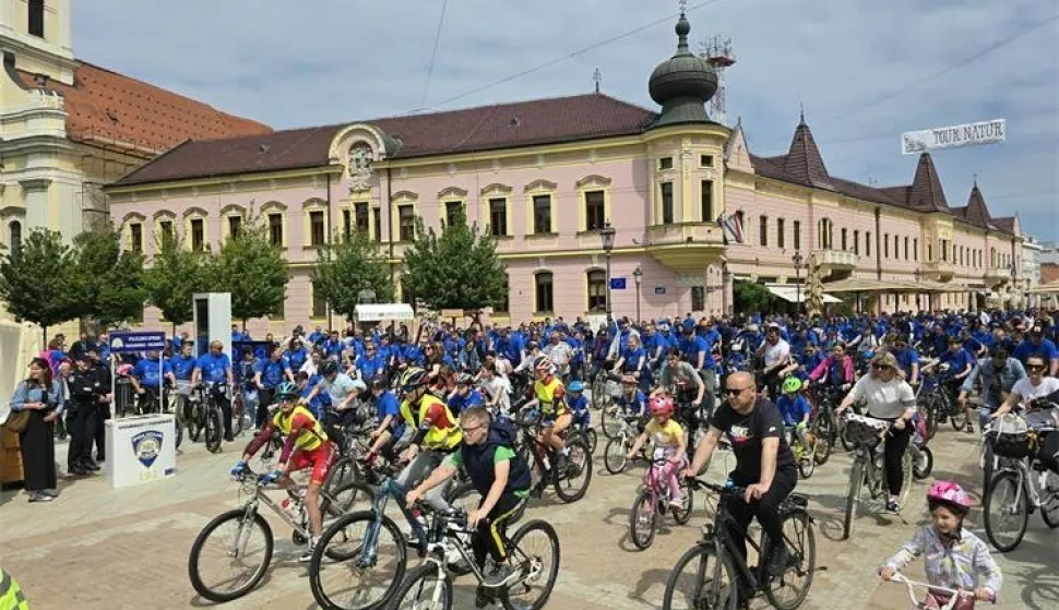 Među brojnim Vinkovčanima koji su uživali biciklirajući danas je bila i obitelj Ševerdija - tata Šime, mama Silvija i maleni Flora i Bepo.