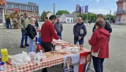 - Budući da smo se pojavili po prvi puta, uvjerenja sam da su nam šanse velike i vjerujemo u pobjedu, ako ne u prvom, onda u drugom krugu, što će se odraziti i na ''broj ruku'' u Gradskom vijeću - istaknuo je Juratovac. Samo nekoliko metara dalje, SDP i njihov gradonačelnički kandidat, Andrej Jurić, prolaznicima su dijelili baranjski doručak - kruh s mašću.