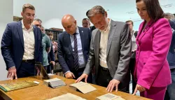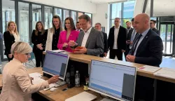 Kao i svi koji prvi put dođu u novu zgradu impresioniran je ostao i današnji gost kojega su kroz knjižnicu proveli domaćini, gradonačelnik Ivan Bosančić i ravnateljica Vedrana Lugić sa svojim suradnicima.