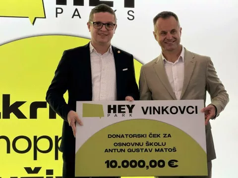 - Prvi put u Vinkovcima dobili smo Müller, C&A i Leggiero. Veselim se svim posjetiteljima ovog parka i želim im ugodnu kupnju – rekao je uime Hey Parka Vedran Abramović, te uručio donatorski ček za obližnju OŠ Antuna Gustava Matoša od 10.000 eura, koji je primio ravnatelj te škole, Dario Dragun.
