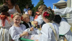 - Hvaljen Isus i Marija, pozdravlja vas Šokadija - za kraj povorke pjevala su djeca KUD-a Šokadija Budrovci, nakon čega se malovezovska povorka slila u hladovinu Strossmayerova parka, gdje su, nakon pozdravne riječi gradonačelnika Marina Mandarića, nastavila s dječjim pjesmama i plesovima.