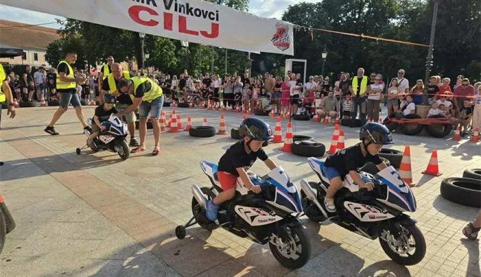 Na vinkovačkom korzu utrkivali se mali motoristi - djevojčice i dječaci u dobi od 3 do 6 godina