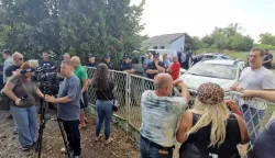 Uoči našeg dolaska u Gaćešinu ulicu nazočili smo mirnom prosvjedu seljaka ispred Vetamove veterinarske stanice, nadležne za ovu općinu. Pedesetak mještana pokušalo je, na miran način, spriječiti veterinare u nakani obavljanja naloženog im posla. Među njima je bio i Branko Bertić.