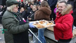Time je bušarski čavo, prepoznatljive trumpovske frizure, u trumpovskom plavom sakou naglašenih ramena i crvenoj kravati, dao znak da krene velika pokladna povorka 32. Bušara, najvećih poklada istočne Hrvatske. Nakon što mu je gradonačelnik Marin Mandarić predao ključeve grada, iz Splitske ulice, preko korza, krenula je bučna i vesela povorke s 36 skupina i 1200 sudionika pod maskama iz cijele RH i Vojvodine.