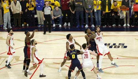 New York Knicksi poveli su u polufinalu Istočne konferencije protiv aktualnog prvaka Bostona, nakon što su prvu utakmicu u gostima pobijedili nakon produžetka 108:105. Knicksi su gubili i s 20 poena u drugom poluvremenu, a izgubili su sve četiri utakmice od Celticsa u regularnoj sezoni. Jaylen Brunson sa 29 poena, pet asistencija i četiri skoka i OG Anunoby s 29 poena predvodili su goste. Karl-Anthony Towns pridonio je s 14 poena i 13 skokova, a Josh Hart s 14 poena i 11 skokova. Myles McBride dodao je 11 poena, a Mikel Bridges osam poena, sedam skokova i tri ukradene lopte, uključujući ključnu od Jaylena Browna sekundu prije kraja produžetka. Za Boston, koji je u doigravanju promašio rekordnih 45 trica, Jayson Tatum postigao je 23 poena, uz 16 skokova i šest asistencija, a Jaylen Brown imao je 23 poena, sedam skokova i pet asistencija. Derrick White dodao je 19 poena i 11 skokova, a Jrue Holiday 16 poena i šest skokova.