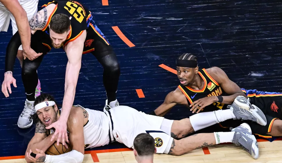 Nuggetsi su sa 121:119 slavili kod prvih nositelja na Zapadu, Oklahome. U okršaju dvaju kandidata za MVP nagradu Nikola Jokić imao je i nešto bolje brojke od Shai Gilges-Alexandera, ali u NBA ligi one, kao i ukupan dojam, nisu odlučujuće za izbor. Denver je imao zaostatak od 14 poena, a pobjedu je donio Aaron Gordon, koji je pogodio tricu četiri sekunde prije kraja. Bio mu je to 22. poen, imao je i 14 skokova, a predvodio je Jokić s 42 poena, 22 skoka i šest asistencija. Jamal Murray imao je 21 poen, šest skokova i šest asistencija, Russell Westbrook 18 poena, a Christian Brown dodao je 11 poena i 13 skokova. Domaće je predvodio Gilges-Alexander s 33 poena, uz deswet skokova i osam asistencija, Alex Caruso dodao je 20 poena, a Jaylen Williams imao je 16 poena, sedam skokova i četiri asistencije. Lu Dort imao je 14 poena, Isaiah Hartenstein završio je utakmicu s 12 poena i devet skokova, a Chet Holmgraham s 12 poena i šest skokova.